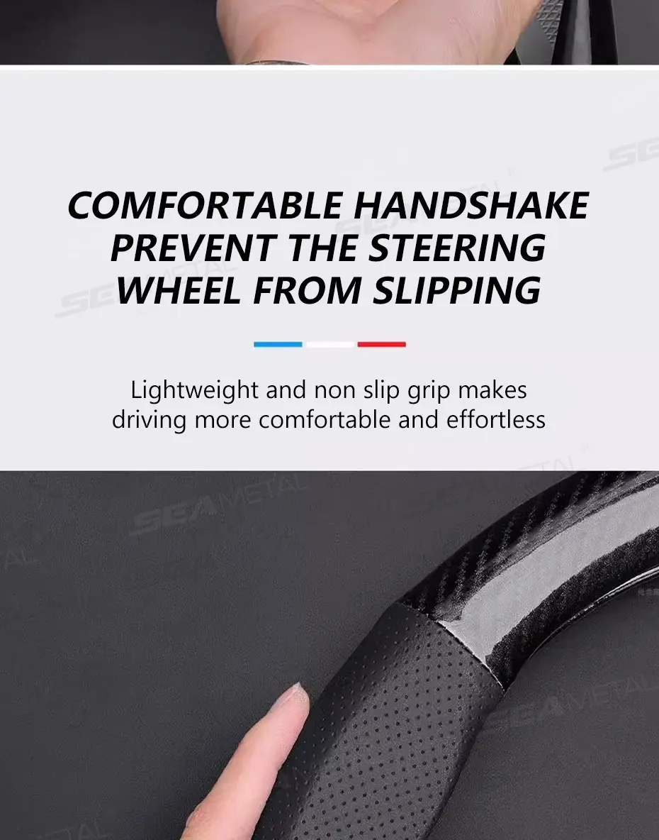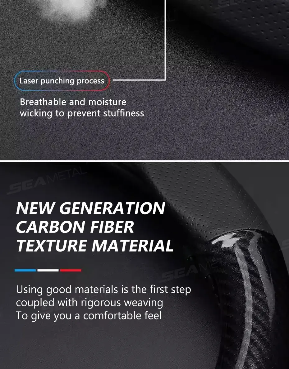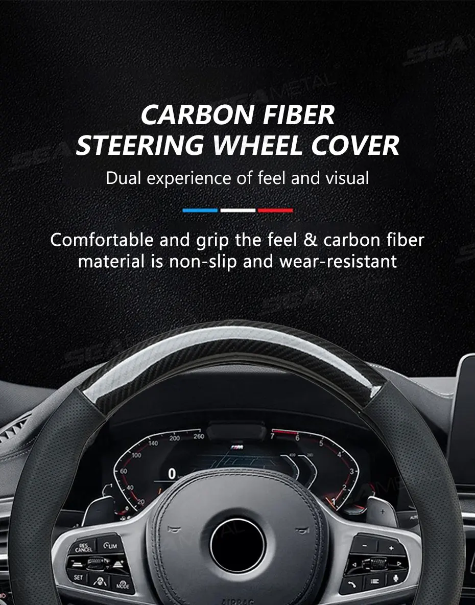 • Breathable Carbon Fiber Material : Crafted from premium carbon fiber, this steering wheel cover offers superior breathability, keeping your hands cool during long drives.