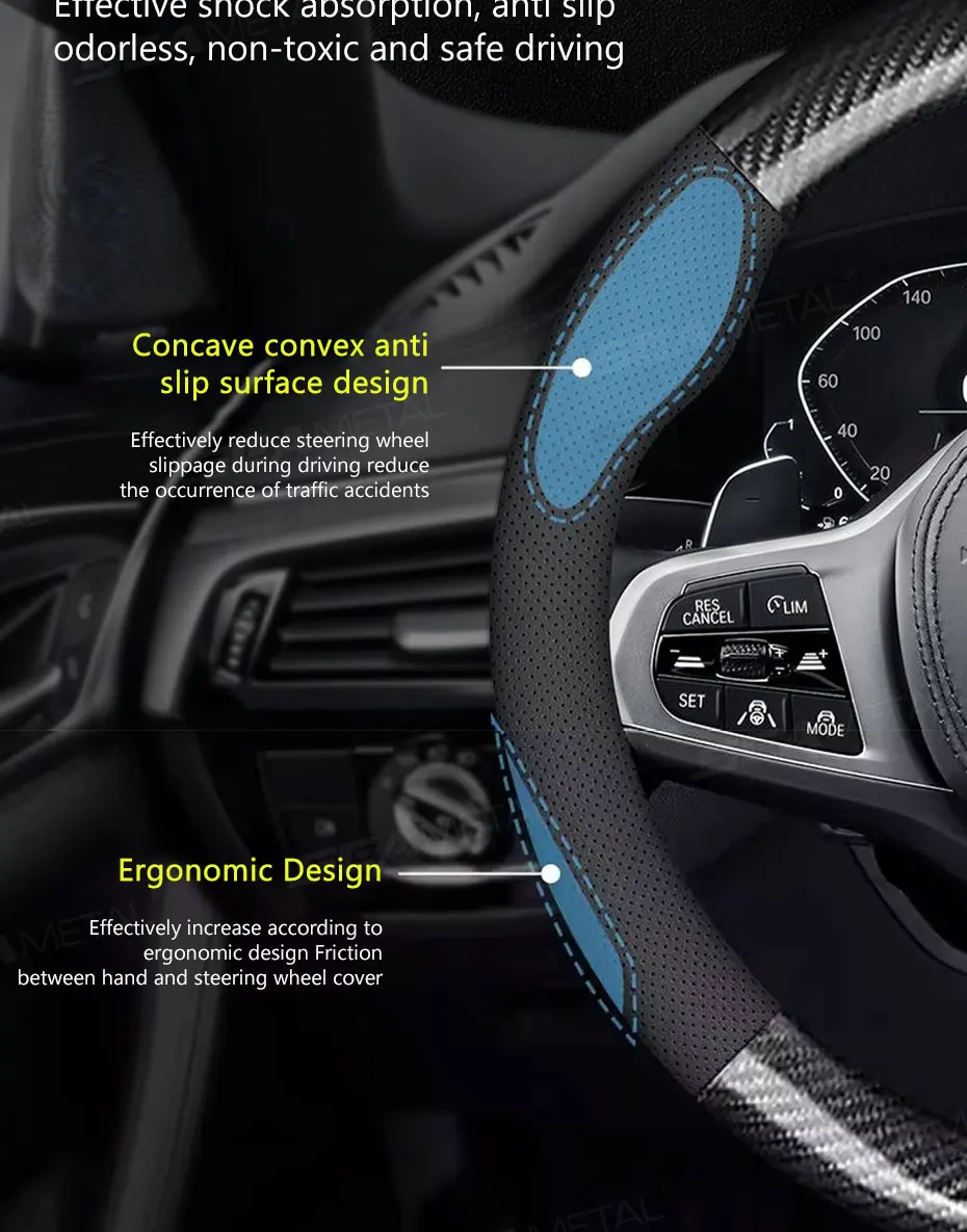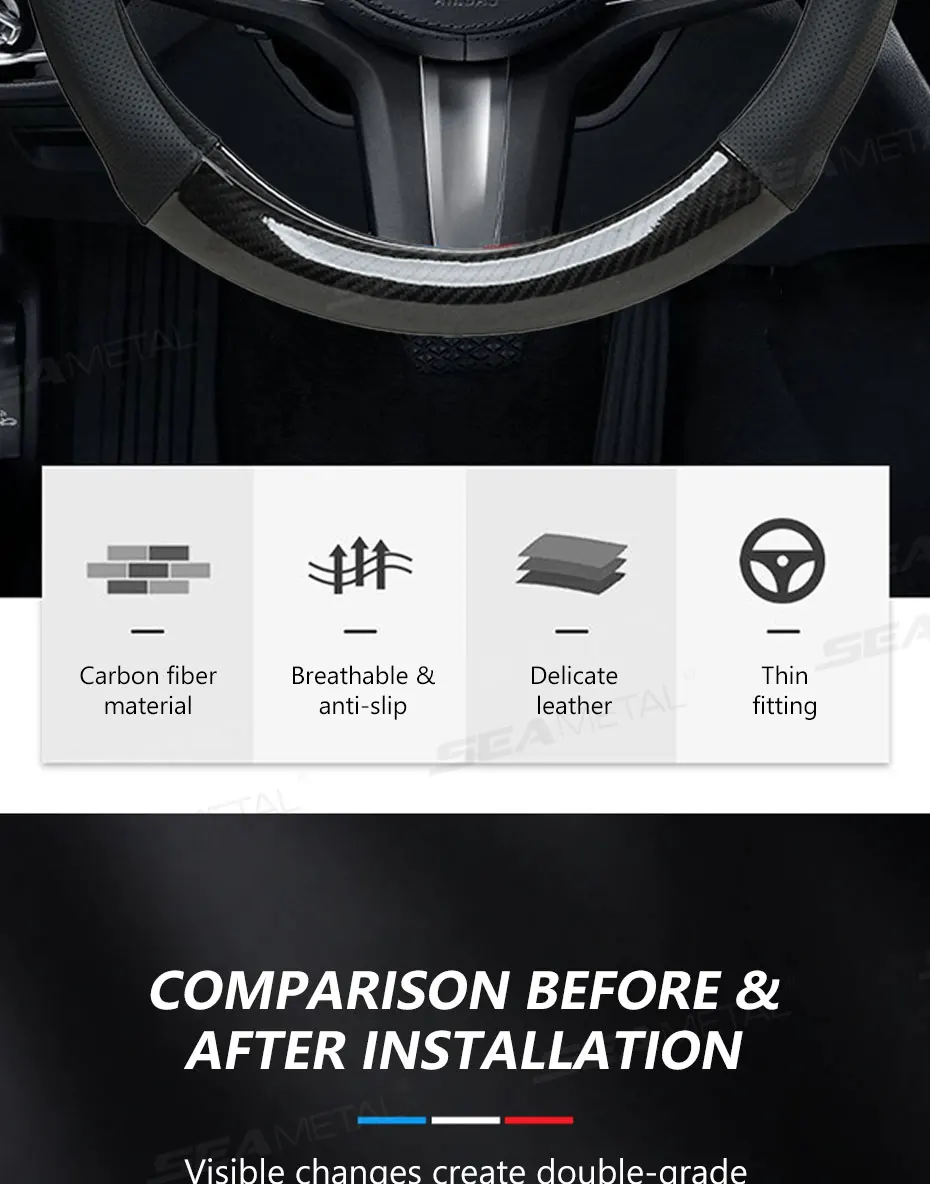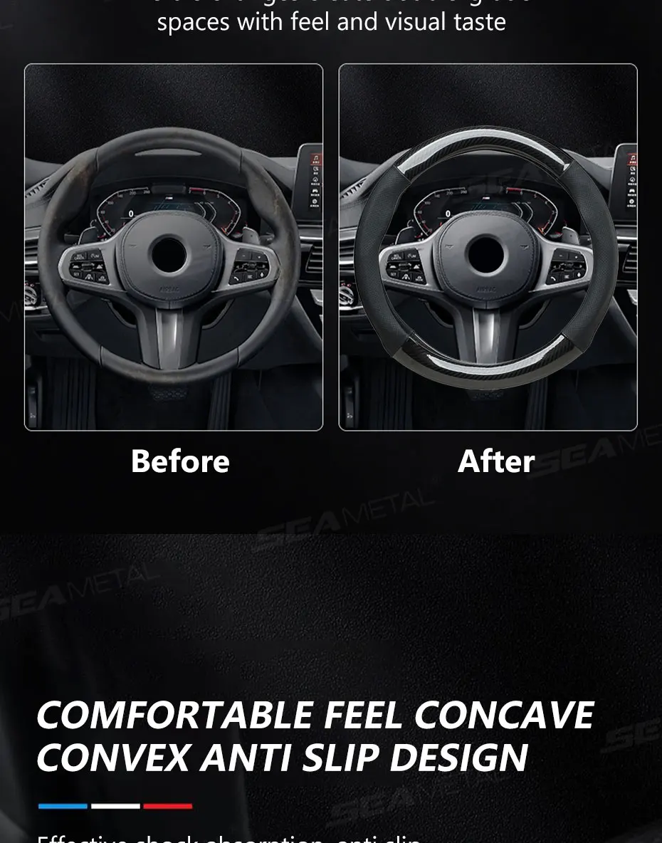 • Breathable Carbon Fiber Material : Crafted from premium carbon fiber, this steering wheel cover offers superior breathability, keeping your hands cool during long drives.